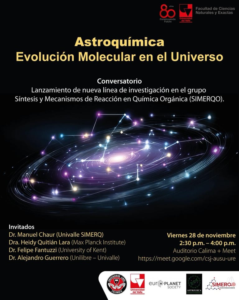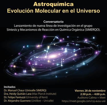 The SIMERQO Group presents its program in observational, experimental, and computational astrochemistry—an interdisciplinary approach that integrates astronomy, chemistry, and physics to investigate how molecules form and evolve throughout the universe.
