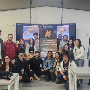 The First Workshop on Planetary Sciences and Astrobiology – Colombia 2024, held from March 6–9, 2024, at the National University of Colombia and the Planetarium of Bogotá, brought together researchers and students to discuss planetary formation, astrobiology, and space exploration through conferences, collaborations, and scientific outreach activities. The event included a field trip to Villa de Leyva to observe geological formations and secondary structures analogous to those identified on Mars.